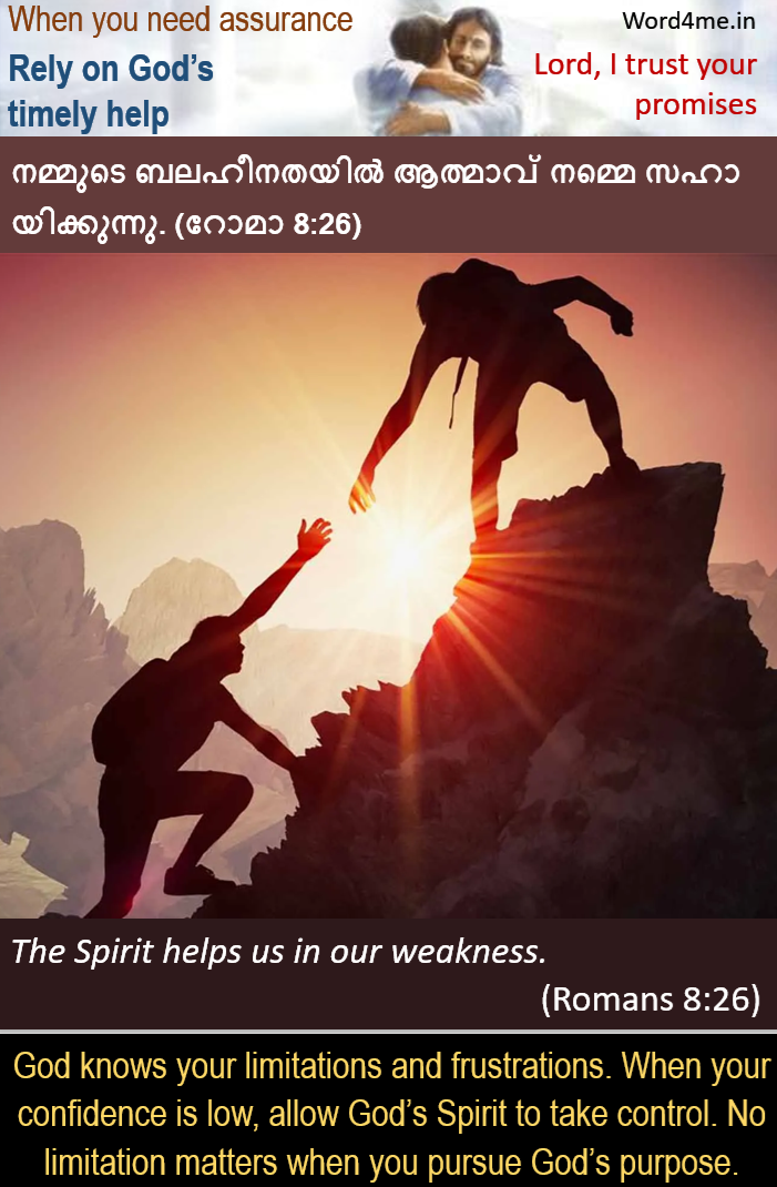 നമ്മുടെ ബലഹീനതയില് ആത്മാവ് നമ്മെ സഹായിക്കുന്നു. (റോമാ 8:26) | The Spirit helps us in our weakness. (Romans 8:26)