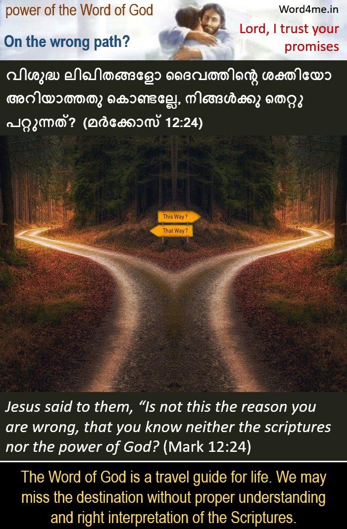 യേശു അവരോടു പറഞ്ഞു: വിശുദ്ധ ലിഖിതങ്ങളോ ദൈവത്തിന്റെ ശക്തിയോ അറിയാത്തതുകൊണ്ടല്ലേ, നിങ്ങള്ക്കു തെറ്റു പറ്റുന്നത്? (മര്ക്കോസ് 12:24) | Jesus said to them, “Is not this the reason you are wrong, that you know neither the scriptures nor the power of God? (Mark 12:24)