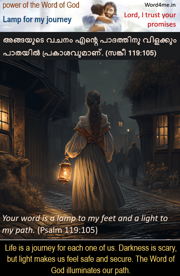 അങ്ങയുടെ വചനം എന്റെ പാദത്തിനു വിളക്കും പാതയില് പ്രകാശവുമാണ്. (സങ്കീര്ത്തനങ്ങള് 119:105) | Your word is a lamp to my feet and a light to my path. (Psalm 119:105)